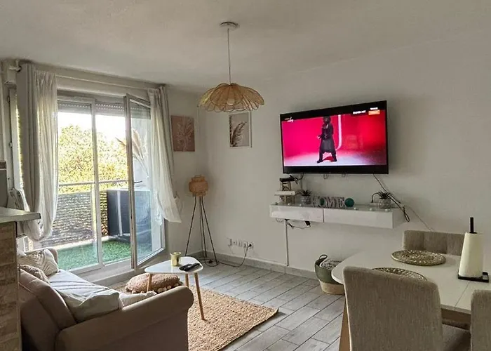 APPARTEMENT T3 EQUIPE IDEAL FAMILLE COMODITES LAC JEUX et TERRAINS A PROXIMITE Toulouse spacieux est situé à 4 km du Château d'Eau et offre le Wi-Fi pour les affaires ou les loisirs. L'un des points forts de la résidence est la terrasse qui permet aux clients d'admirer la vue sur la cour.